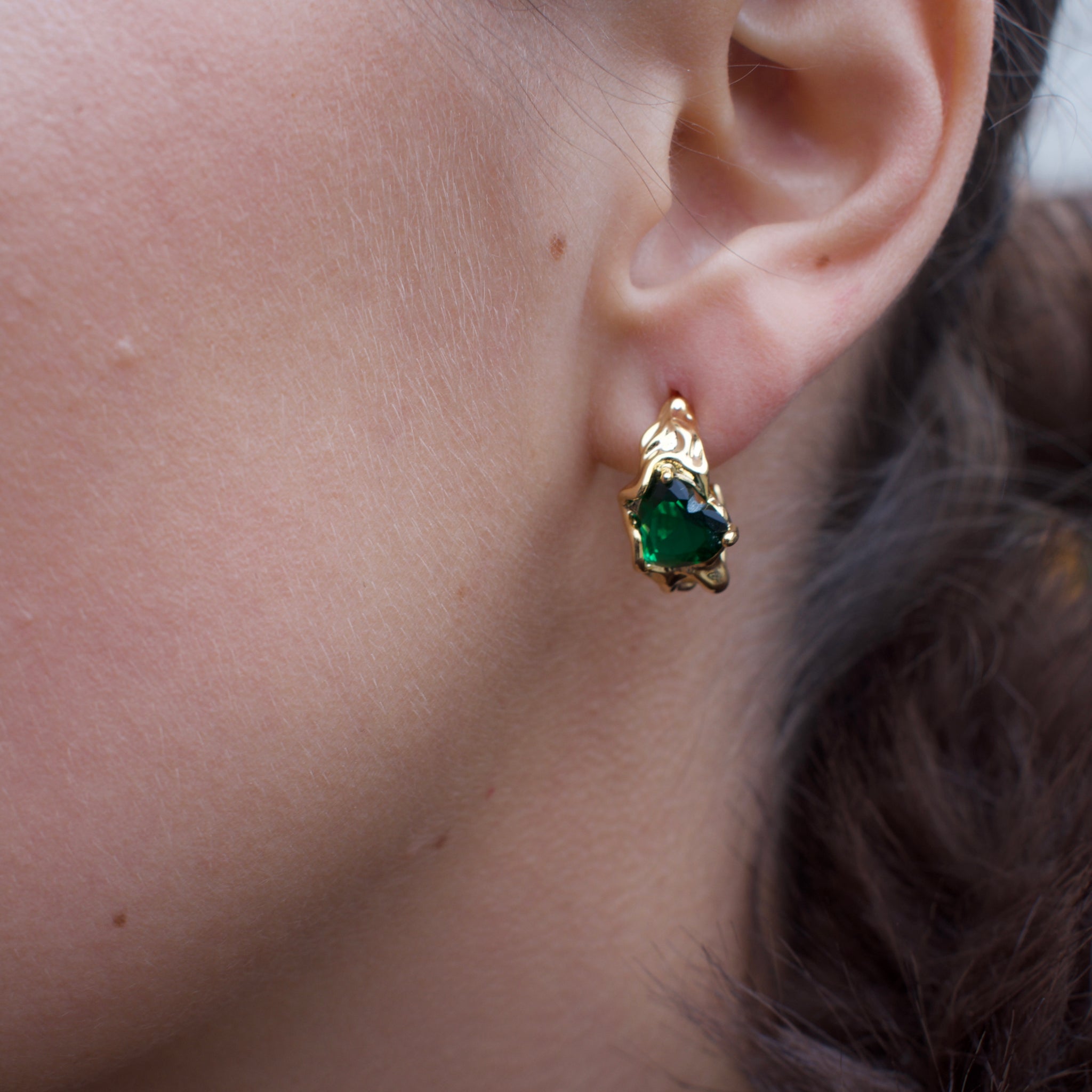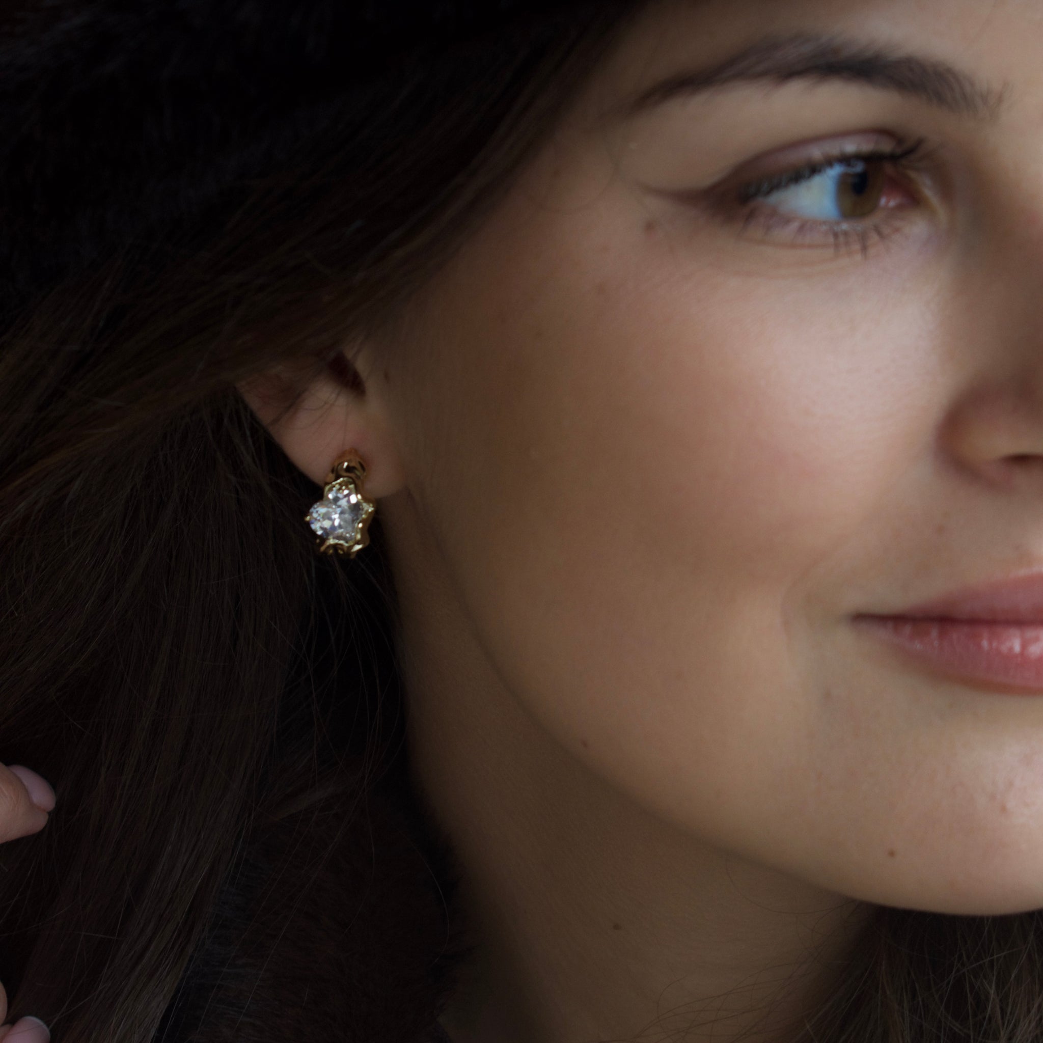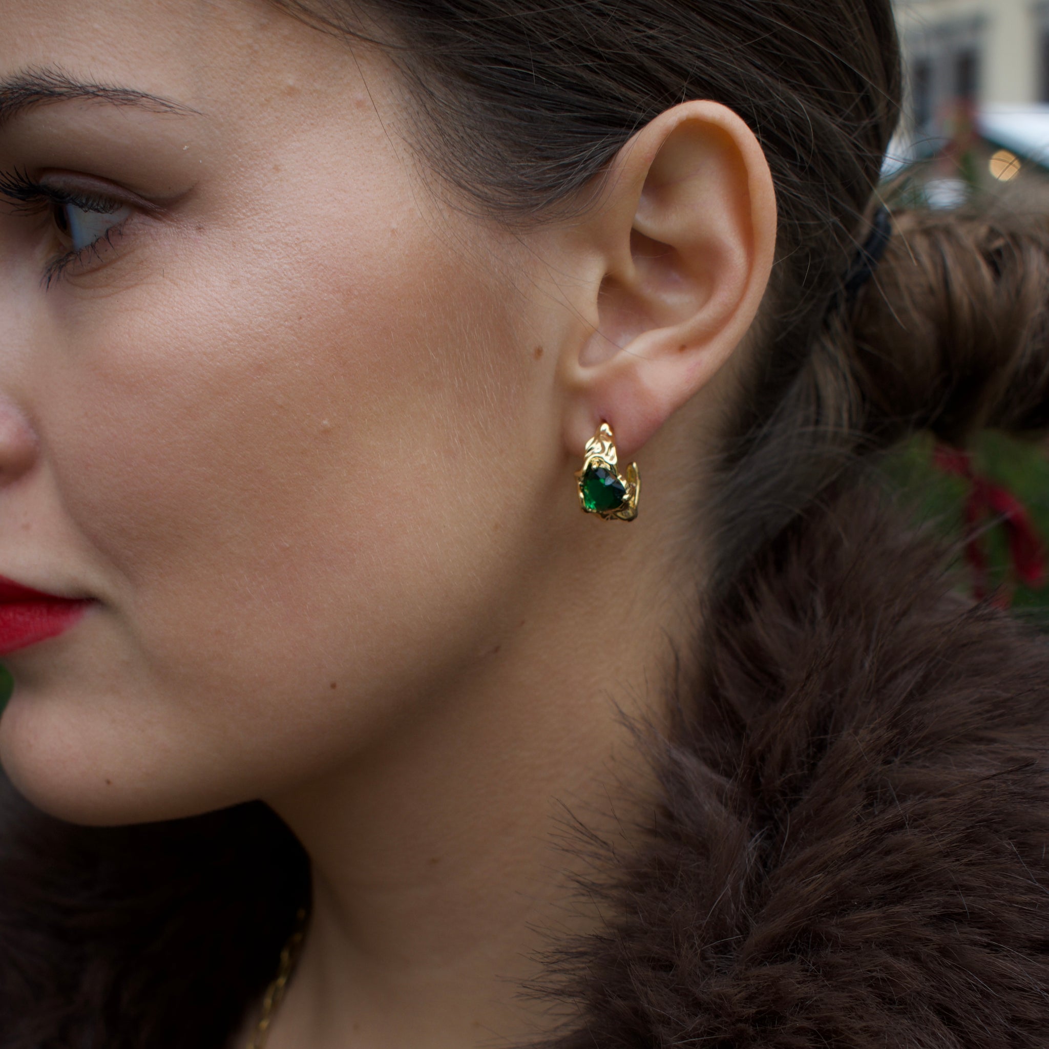 Posebni asimetrični uhani v obliki srca iz medenine, prevlečene s 14k zlatom, okrašeni z bleščečimi kubičnimi cirkoni. Elegantni, unikatni in ustvarjeni za izstopanje. Na voljo z zlatim ali srebrnim kristalom za osebni pridih.