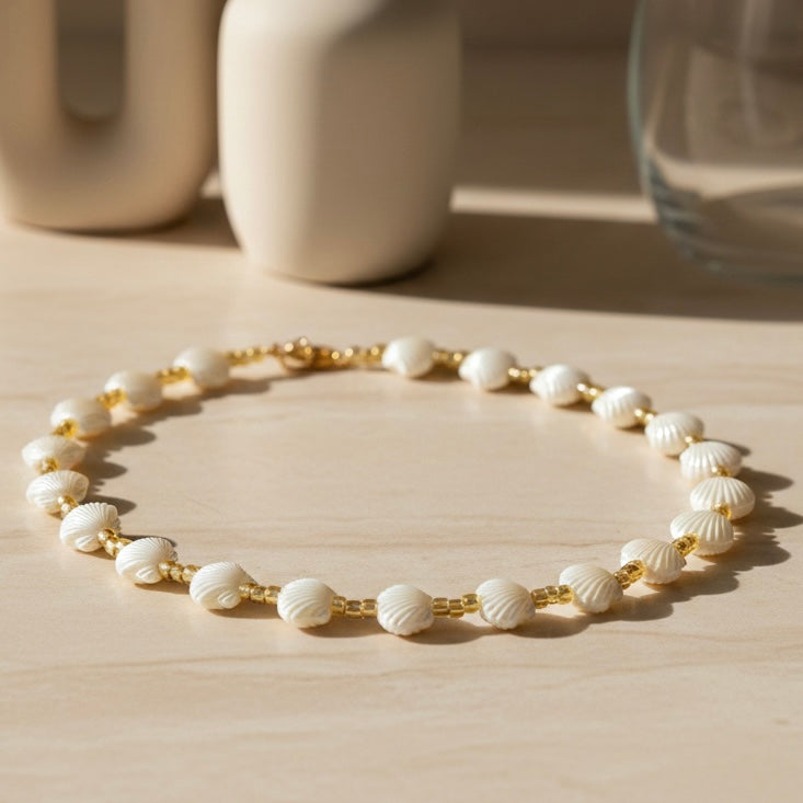 Amalfi združuje školjke in perlice v popolno harmonijo, ki odseva razkošje in brezčasno lepoto italijanske obale. Nosite jo kot simbol poletnega razvajanja in elegance.