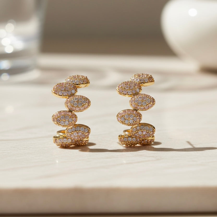 Elegantni uhani iz nerjavečega jekla, prevlečenega z zlatom, z nežno bleščečim sijajem. Brezčasni, lahkotni in popolni za vsakdan ali za posebne večerne priložnosti.