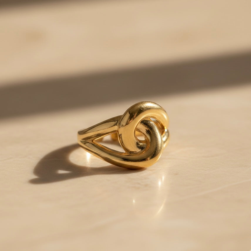 The elegant knot design symbolizes connection and strength – a timeless adjustable ring that complements any style.
